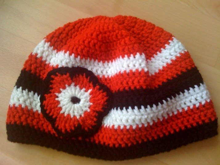 Dámská háčkovaná čepice s aplikací kytky, 100 % akryl