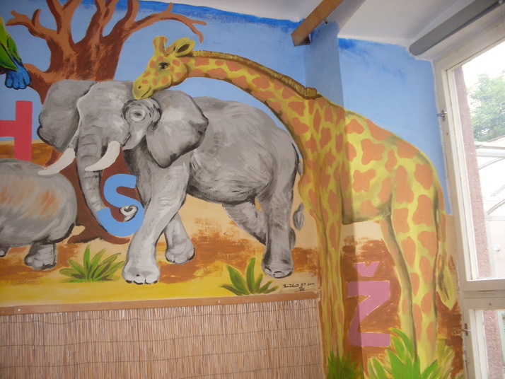malba na stěny základní školy podle přání paní ředitelky, malba má být i interaktivní zaměřená na žáky prvního stupně.
