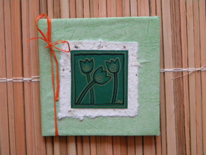 Notýsek je vyroben z barevné čtvrtky,obyčejné čtvrtky,ručního papíru.Malovaný tuší a gelovým perem.