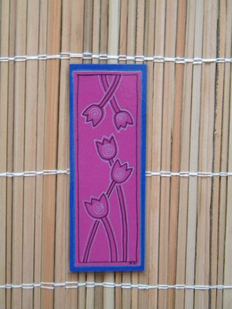 Záložka je vyrobena z barevných čtvrtek.Malovaná tuší a gelovým perem
