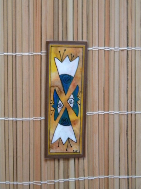 Záložka je vyrobena z barevné a obyčejné čtvrtky.Malovaná tuší,temperou.