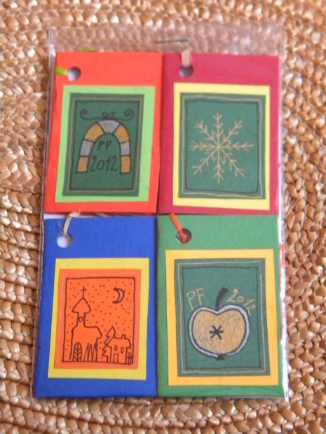 Jmenovky k dárkům jsou tvořeny z tvrdé barevné čtvrtky.