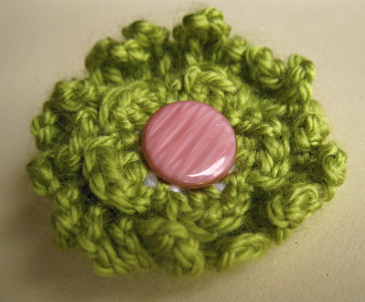 Háčkovaná brož s růžovým knoflíkem