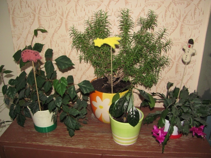 Vánoční zápichy do květin - prasátko, kometa, sněhulák. V případě zájmu mi napište vnitřní poštou. Ráda Vám je vyrobím. Je možné provléknout nit a pověsit jako ozdobu třeba na stromeček - bez špejle.