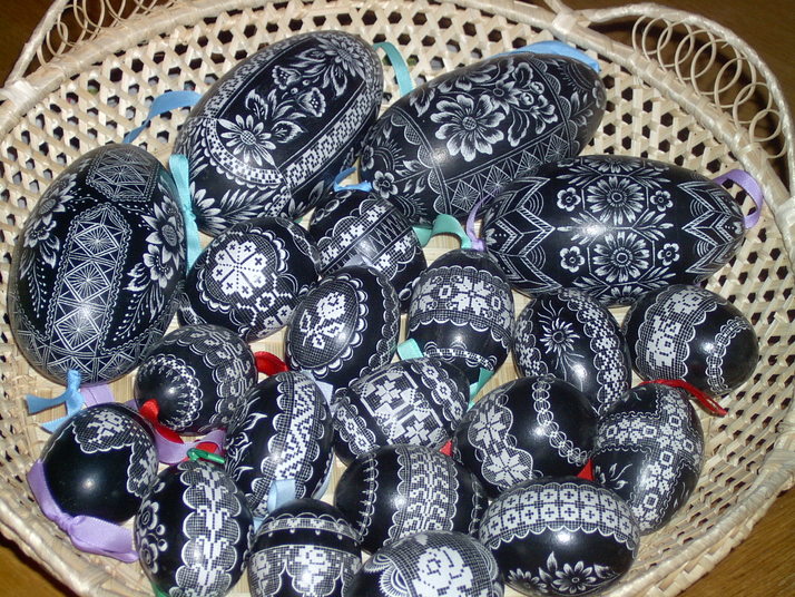 kraslice slepičí,husí škrabané podle původní lidové tvorby na valašsku