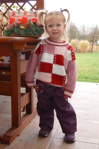 Teplé a praktické kalhoty moc sluší malé princezně Míše.