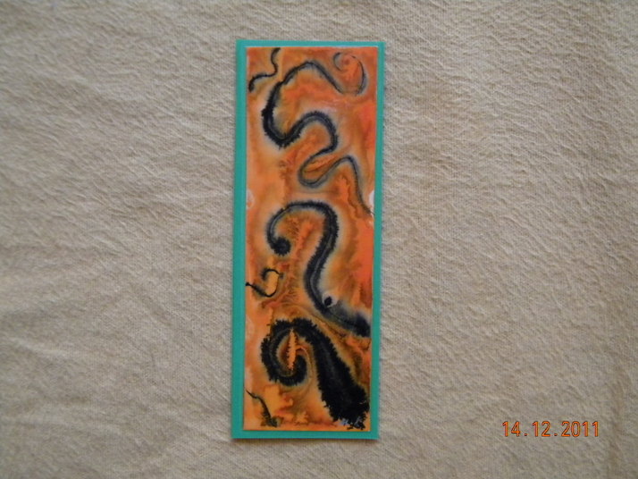 Záložka je vyrobena z barevného papíru a čtvrtky.Malovaná tuší,temperou či ,gelovým perem.