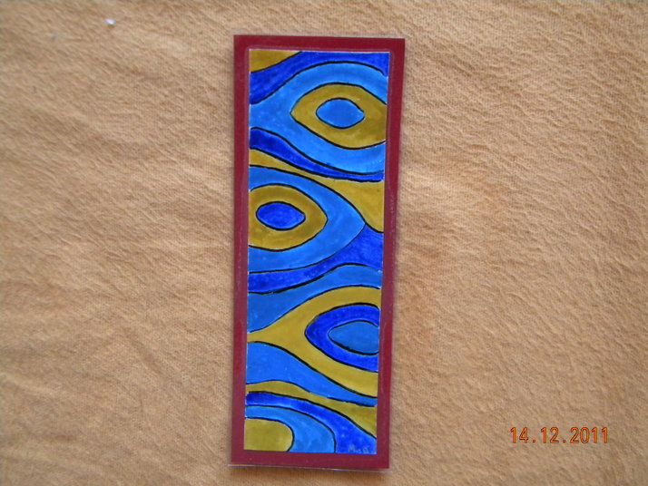 Záložka je vyrobena z barevného papíru a čtvrtky.Malovaná tuší,temperou či ,gelovým perem.
