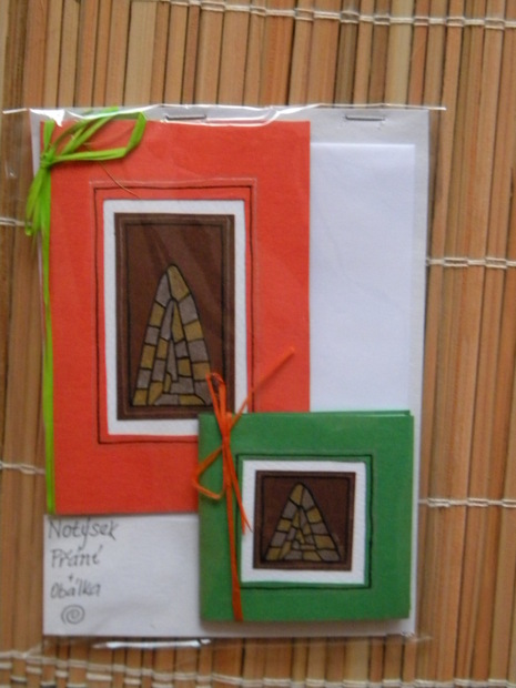 Přání s notýskem jsou tvořeny buď z barevné,nebo vlnité čtvrtky a ručního papíru.Malovaná tuší nebo černým fixem a gelovým perem (zlatá,stříbrná).