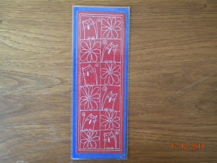 Záložka je vyrobena z barevného papíru a čtvrtky.Malovaná tuší,temperou či ,gelovým perem.