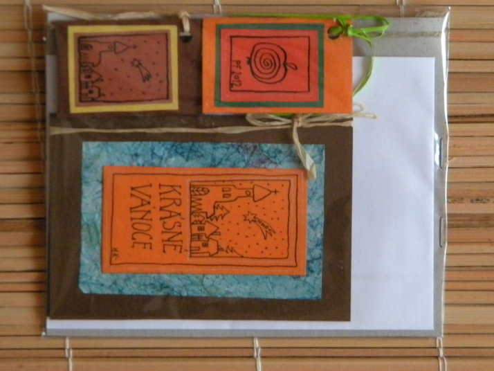 Přání,jmenovky a obálka jsou zabalené v celofánovém sáčku.