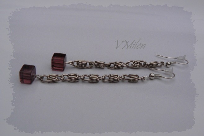 Náušničky jsou vyrobené pro maminku k Vánocům. Jsou do sady k náramku a náhrdelníku. Tvoří je motaný řetízek a skleněná kostečka.