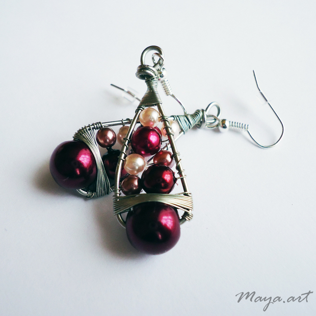 drátované náušnice propletené vínovými voskovkami