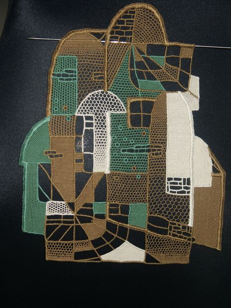 Klauzurní práce z šité krajky na téma architektura.