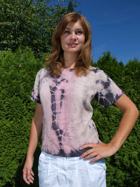 Halenka z buretového hedvábí, malovaná a batikovaná