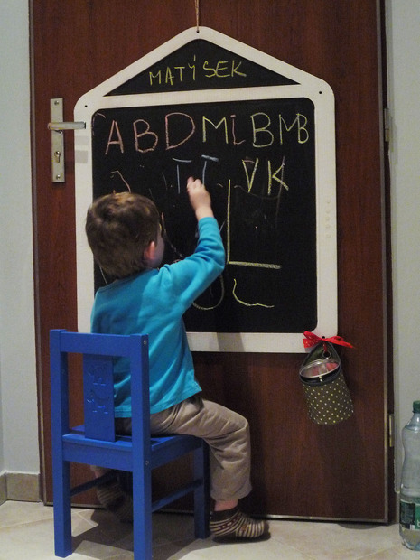 Ukázka použití tabule nalepené na dveřích (málo místa jinde)). Tabule má uříznutá dvířka, zde by překážely.