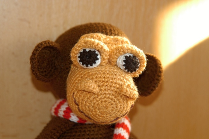 Opička háčkovaná opět podle návodu Kamlin. Bydlí teď v Roztokách u neteřinky Adélky.