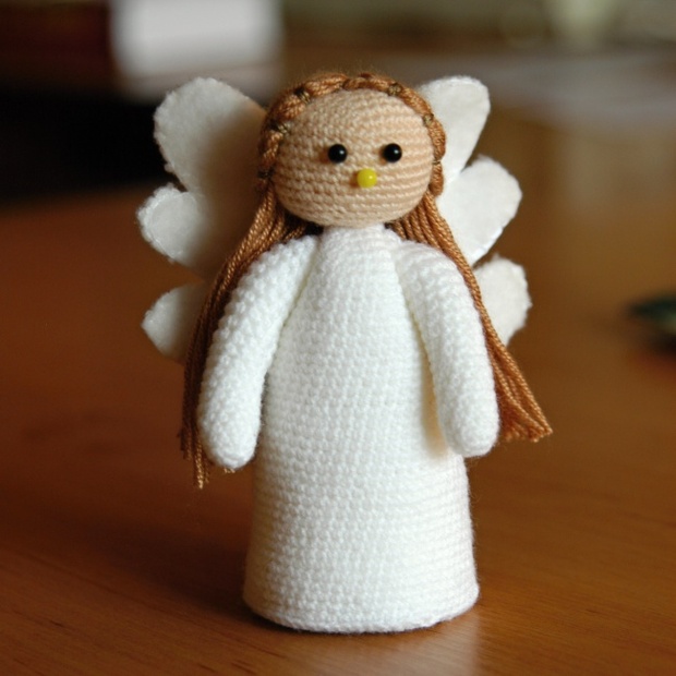 Další háčkovaná postavička podle Kamlin. Andělíček, který odletěl k manželově mamince, aby jí dělal o vánocích radost