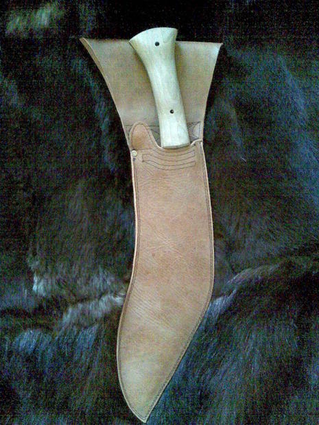Pouzdro na nůž nestandardního tvaru na objednávku.Materiál - kůže