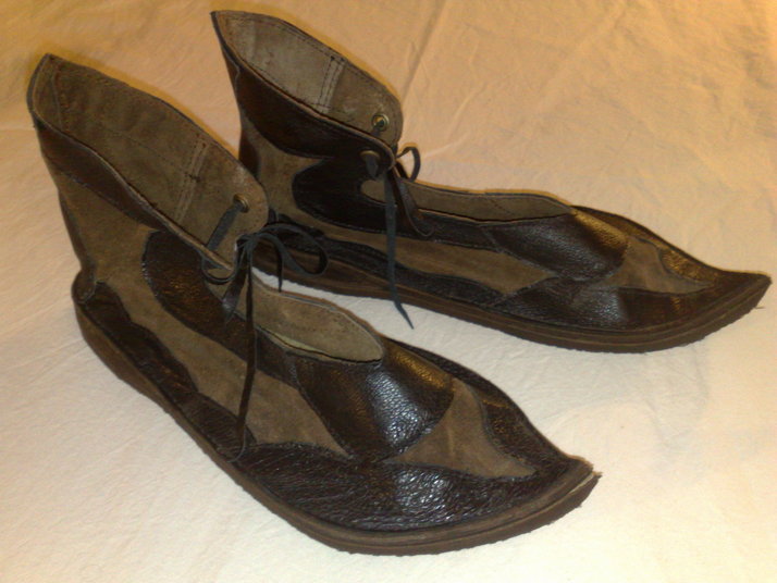 Boty nízké, období Gotika, šito na zakázku pro taneční skupinu dobových tanců, materiál - kůže