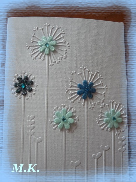 embosované přáníčko, dozdobené květinkami