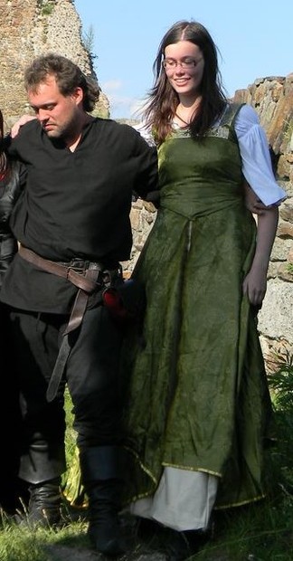 Šaty jsou inspirovány renesancí. Vznikaly původně na kamarádčinu svatbu, ale nestihla jsem je. Šila jsem je asi měsíc, první velký počin na stroji (vlastně asi vůbec první počin na stroji), použito vše co bylo po ruce:)