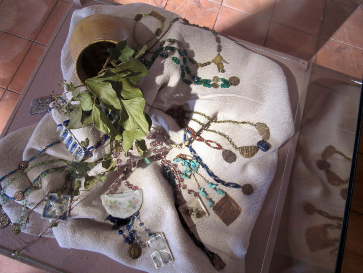 Vystavené šperky-porcelán,sklo,měď a bronz...