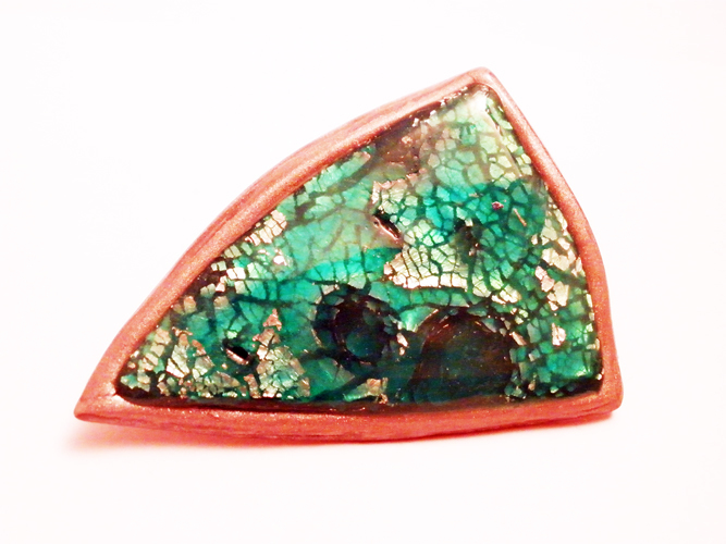 Přívěsek vyrobený z fima a stříbrných folií technikou mokume nendo.