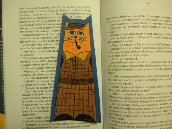 Záložka je vyrobena z tvrdé barevné čtvrtky a barevného papíru (pozadí).