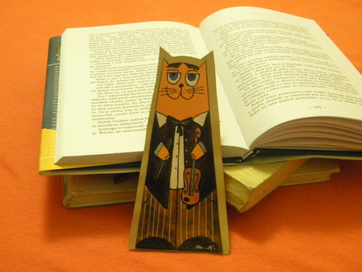 Záložka je vyrobena z tvrdé barevné čtvrtky a barevného papíru (pozadí).