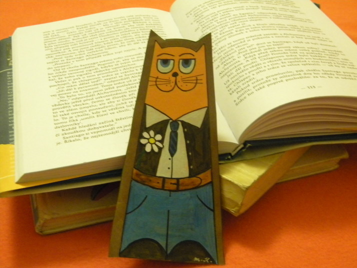 Záložka je vyrobena z tvrdé barevné čtvrtky a barevného papíru (pozadí).