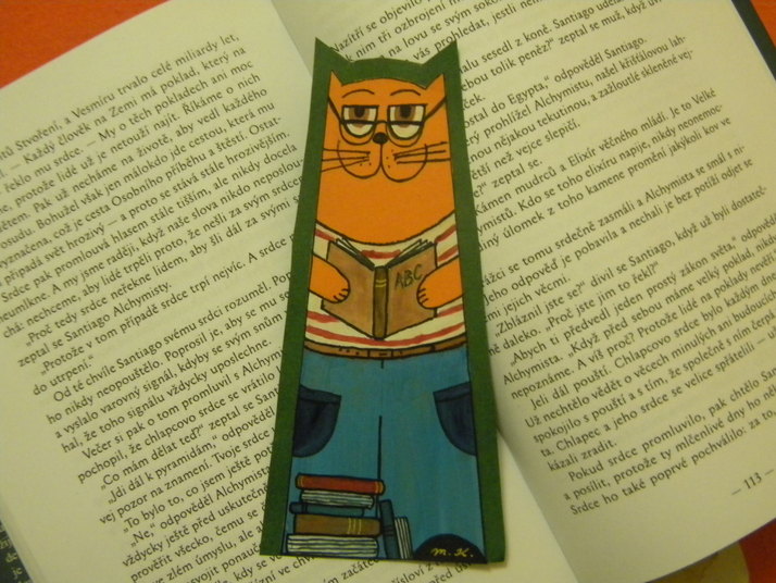 Záložka je vyrobena z tvrdé barevné čtvrtky a barevného papíru (pozadí).