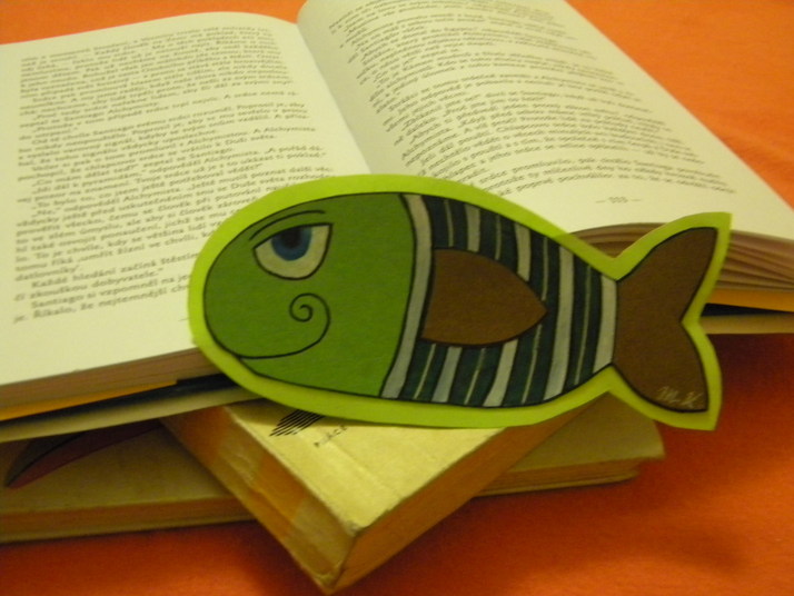 Záložka je vyrobena z tvrdé barevné čtvrtky a barevného papíru (pozadí).