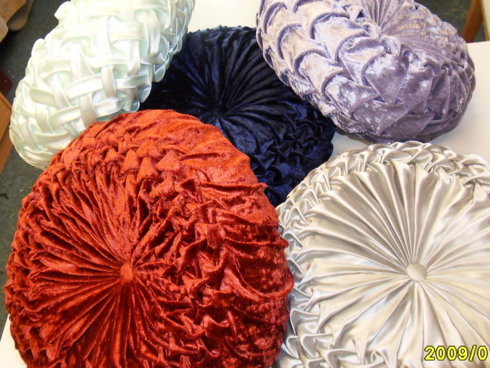 sametové a saténové dekoráční polštářky ručně šite, průměr 40cm