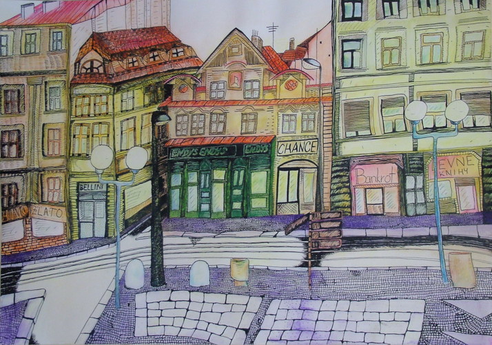 pohled na ulici Spálenou v Praze (při výlezu z metra) - trochu sem se nudila při brigádě, tak z dlouhé chvíle vznikl tento :o)