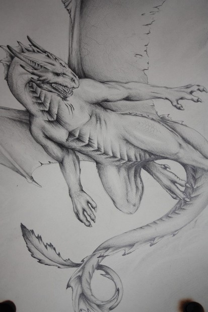 Drak mezi mraky, fotka je oříznutá - následnující fotka je celý obraz. Tužka - A2