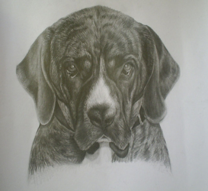 Brazilská fila (smutne koukala do fotaku, ze jeste nemuze snist dort co ma pred sebou, mela narozeniny :D ). Tužka A3