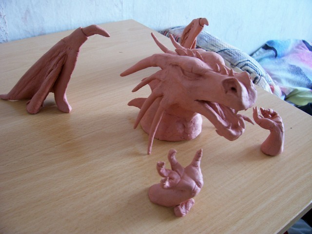 Drak z keramické hlíny, následně přilepený na kus prířodní kulatiny i s kůrou a pověšený na zeď