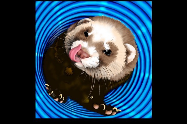 Fretka v rouře kreslená myší ve Photoshopu