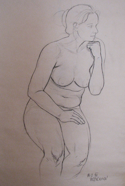 Kresba umělým uhlem na balícím papíře. Formát cca 100x70cm