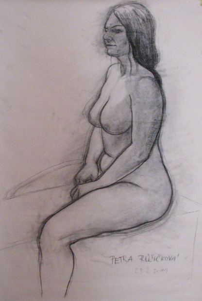 Kresba přírodním uhlem na balícím papíru. Formát cca 100x70cm