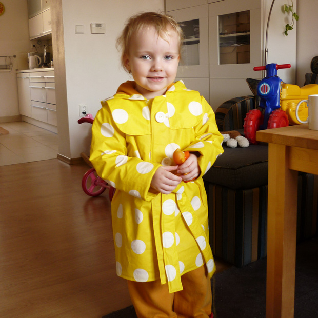 Moje oblíbená látka na kabátky z Ikei, tentokráte použita v žluté barvě, kterou jsem koupila takřka na poslední chvíli před vyprodáním.