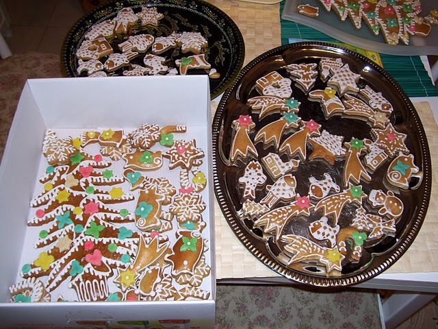 Pšenično-žitné perníky zdobené domácím marcipánem a bílkovou polevou.
