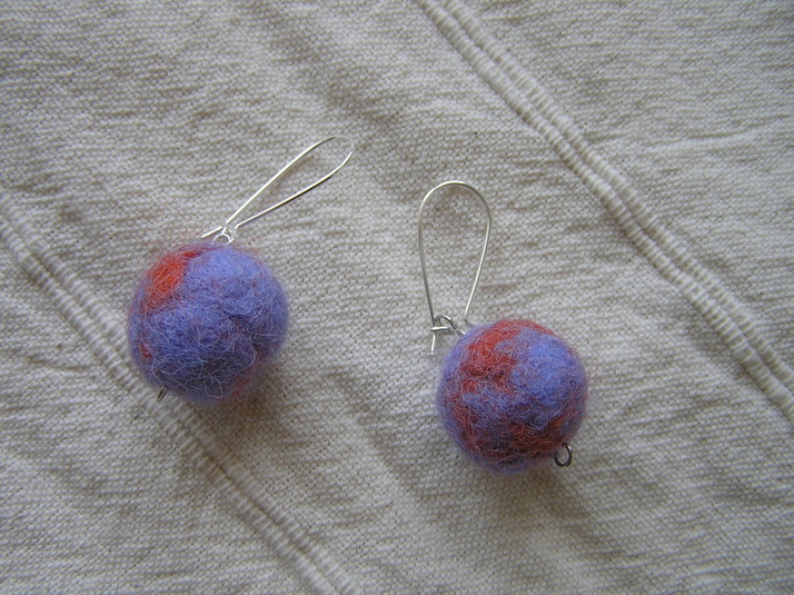 Plstěné náušnice_fialovo oranžové