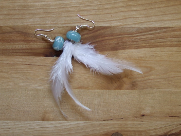 Bílá peříčka s korálkem