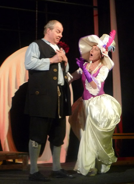 Frosina se snaží Harpagona naklonit na svou stranu. Kostýmy - Bogi