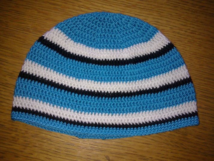 tak tahle čepička už netrvala tak dlouho, jen 3 dny, protože háčkuju jen, když malý spí a nejsem noční pták, kterej by místo spaní háčkoval :D