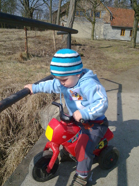 čepička v terénu a na mojí lásce. Modrá mu opravdu sluší ;o)