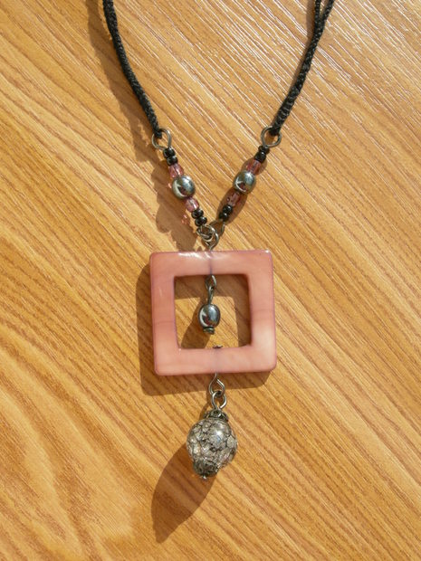 Elegantní starorůžový náhrdelník z minerálu, hematitu, kraklu, rokajlu a ohňovek.