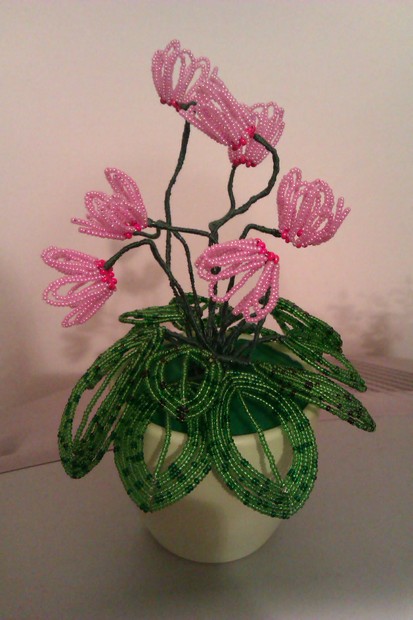 brambořík z korálků, zasazen v květináči do na vzduchu tvrdnoucí hmoty